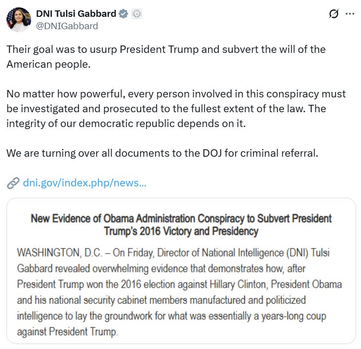 Pay special attention to this bombshell by DNI Tulsi Gabbard: